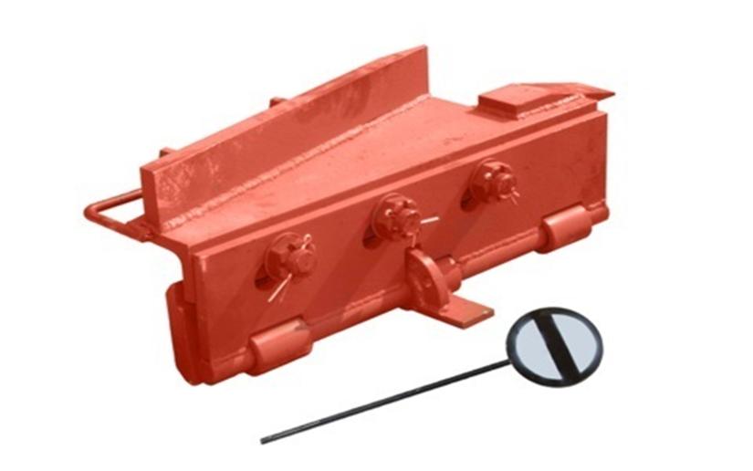 Ручной башмак колесосбрасывающий КСБ Р применяется для экстренного сбрасывания подвижного состава с рельсов. КСБ-Р предотвращает выезд вагонов в опасную зону. Башмак монтируется на пути, которые не включены в электрическую централизацию.